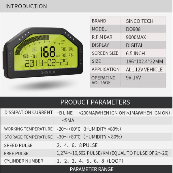 Sinco Tech Do908 Dashboard Autometer Gauge Digital Car Gauges